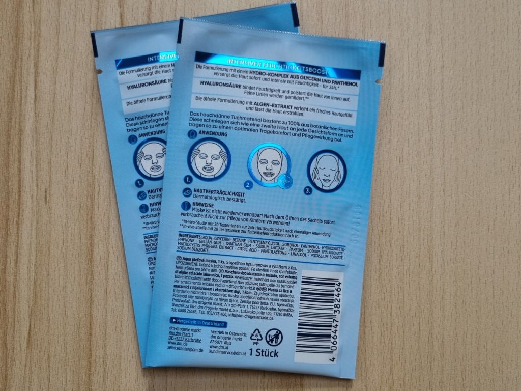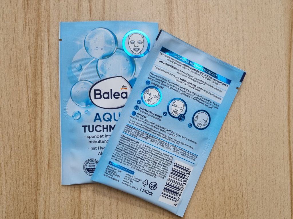 그래서 최근 DM(드럭스토어)을 들렀을 때, Balea Tuchmaske Aqua라는 시트 마스크를 구입했습니다. 1회분 제품으로 가격은 0.95유로. 부담 없이 사용해 볼 수 있는 제품이라 가벼운 마음으로 선택했지만, 제품 구성을 확인해 보니 기대 이상의 구성이 눈에 띄었습니다.